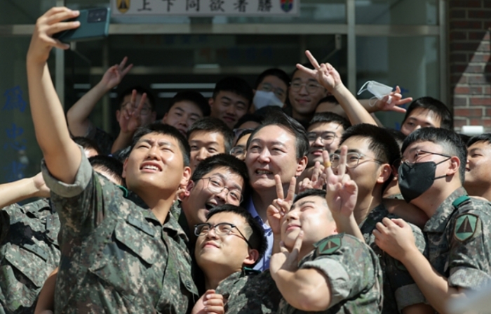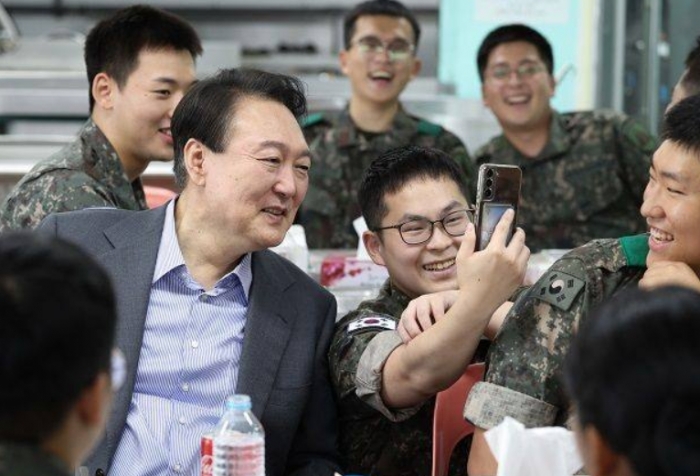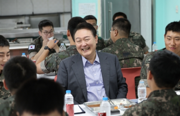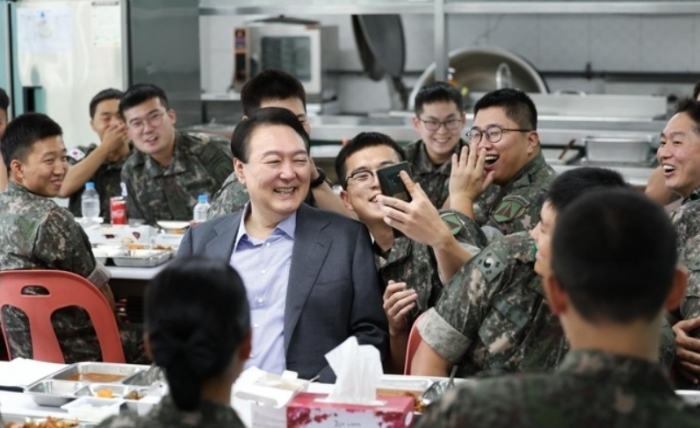 윤 대통령은 이탈리아에서 태어나 현지에서 셰프로 활동하다가 서른 살 늦은 나이에 입대한 A 병장, 제주도가 고향인 B 일병 등 장병 한 명 한 명의 사연을 들으며 “전혀 다른 환경에서 성장한 사람들이 한 팀을 이뤄 같이 복무한 이 시기가 사회에 진출했을 때 돈으로 환산할 수 없는 귀중한 자산이 될 것”이라고 격려했다.