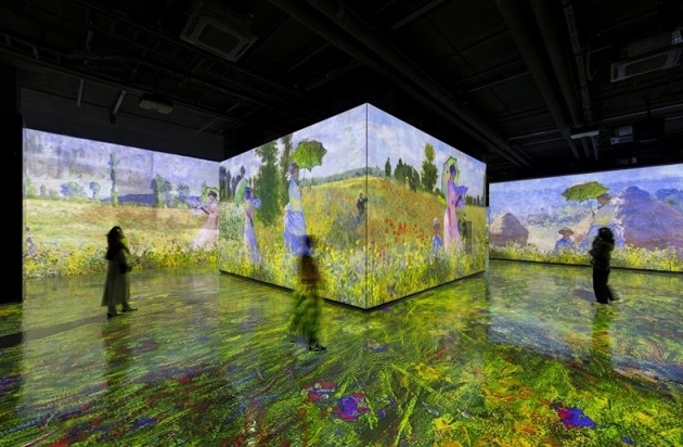 지난해 4월 23일 개막한 모네, 르누아르… 샤갈 전은 지중해 연안에서 활동한 모네, 르누아르, 샤갈을 비롯해 서양 근대미술을 대표하는 거장 20명의 작품 500여 점을 미디어아트로 새롭게 해석한 몰입형 예술 전시다. 전시는 인상주의와 모더니즘의 태동에 중요한 역할을 한 지중해 지역을 중심으로 눈부시고 감각적인 명작을 빛의 물감으로 재현한다. 이와 더불어 곳곳에 설치된 스피커에서 흘러나오는 클래식 및 재즈 음악이 900평에 달하는 거대한 공간을 가득 채우며 관람객이 전시에 완전히 몰입할 수 있도록 돕는다.