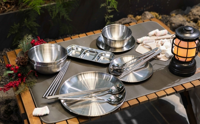 다회용기는 스테인리스로 만들어진 그릇과 접시, 수저 및 다회용 컵 등으로 구성되며, 캠핑 인원에 맞춰 2·4·6인용 등으로 구성된다.