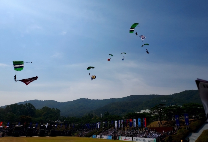 ① 연합ㆍ합동 고공강하에는 육ㆍ해ㆍ공군, 해병대와 미군 장병으로 구성된 50명의 특수부대 장병들이 참가하였다. 지난 세계군인 강하 대회 우승자인 육군 특수전사령부 김성미 상사 등이 포함된 연합ㆍ합동 고공강하팀은 전술강하로 부터 시작해 4-WAY, 다운플랜, 6계단 대형 등 고난도의 기술을 보여주었다.