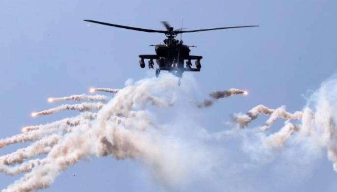 ② 공중전력 사열에는 우리 군의 F-35A, F-15K, 아파치 헬기 등의 주요 항공전력과 주한미군의 F-16, A-10이 참가하였다. 먼저 탱크킬러로 불리는 육군 항공사령부 소속 아파치 헬기가 편대 급선회 회피기동 등을 선보이며 현존 최고공격헬기로서의 위용을 과시했다. 이어서 공중정찰 자산인 E-737 항공통제기와 P-3 해상초계기, 주한미군 자산인 A-10 공격기 편대를 선두로 하여, 미 F-16 전투기 편대, F-15K 전투기 편대, F-35A도 전투기동을 선보이며 우리 군의 위용을 보여주었다.