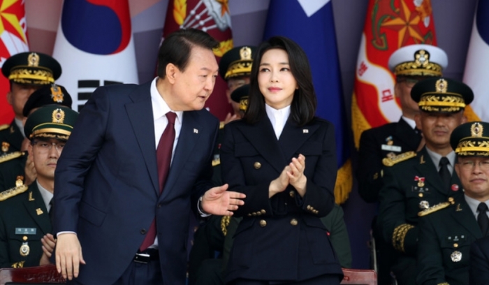 윤 대통령은 이종섭 국방부 장관을 비롯한 군 주요직위자, 현행작전 및 강군 육성에 이바지한 이준일 육군 중령 등 육·해·공군 및 해병대 장병, 6·25전쟁 참전용사인 해병대 1기 이봉식 옹, KF-21과 현무-II·III 연구 개발에 참여한 윤종호, 김영철 박사, 미래 국군의 주역인 각군 사관생도 등 24명과 함께 행사장에 입장했다.