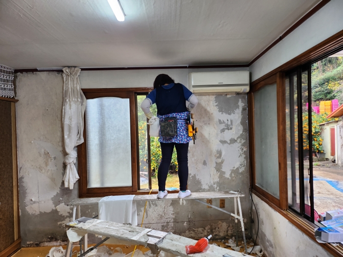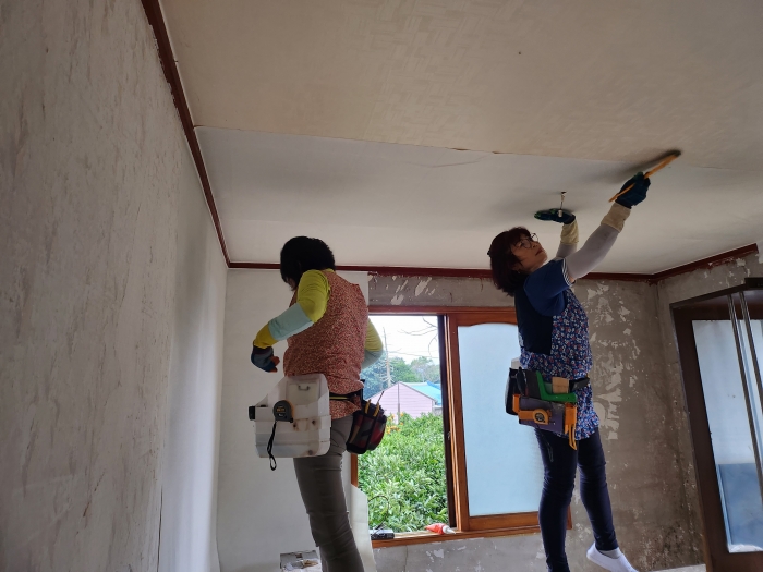 김명호 위원장은 “집수리 봉사활동에서 소홀하기 쉬운 부분이 천 정에서 빗물이 새거나 벽에 습기가 차서 곰팡이가 피는 현장에 서의 방수, 결로방지 부분을 생략하는 것으로 이는 도배를 해도 그 효과가 반감되는 것은 자명한 일이기에 집수리봉사활동에서 제일 먼저 습기와 곰팡이 누수 부분을 면밀히 관찰하고 집수리봉사 활동의 효과가 증폭될 수 있도록 최선을 다하고 있다.”고 했다.