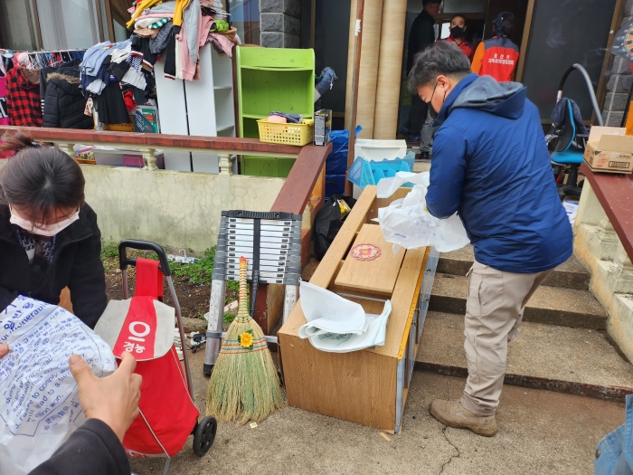 집수리봉사활동과 방문봉사활동에서 가장 어려움울 겪고 있는 부분은 생활쓰레기 처리문제로 수년 간을 치우지 않았던 생활쓰레기가 하꺼번에 쏟아져 나와 이에 대한 처리가 난감하지만, 참여한 백사봉사단 회원과 표선면사무소 직원들은 숙달된 솜씨로 생활쓰레기를 분리하여 폐기물의 양을 줄이고, 재활용 재원을 확충하는 작업에 이어 규격봉투를 사용하여 주변환경을 깨끗하게 정리하였다.