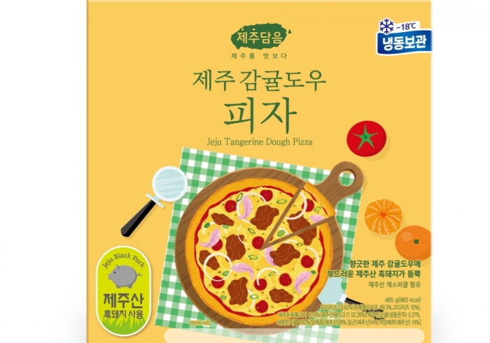 오뚜기의 제주 특화 브랜드 ‘제주담음’이 제주 감귤절임을 넣은 향긋한 감귤 도우에 제주 흑돼지고기 등을 토핑한 ‘제주 감귤도우 피자’를 출시했다.