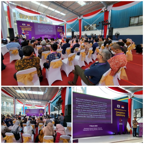 이날 준공식에는 Kumkang Kind 전장열(Jang Yeol Jeon) 회장을 비롯해 인도네시아 Etienne Rigaut, Direktur of Sulzer Chemtech, Kim, Kwangmoo, CEO of KP(Krakatau Posco), Ignatius Warsito, Dirjen Kemenprin, Andra Soni, Ketua DPRD Banten, Ratu Tatu, Bupati Serang이 참석, 고순도 나프탈렌 공장 준공을 축하했으며. 동서인도네시아가 인도네시아 경제 성장의 한 축을 담당하는 최첨단 화학기업으로 성장할 것을 당부했다.