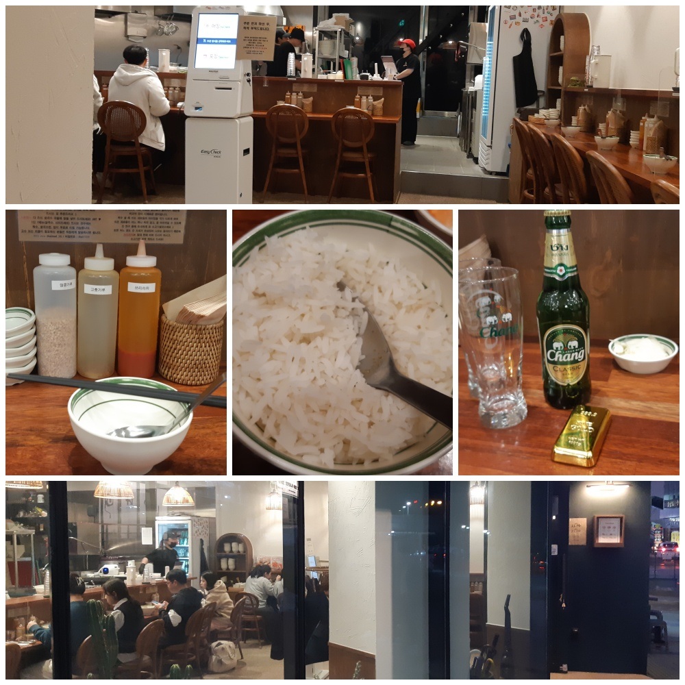 -메뉴:태국쌀국수(11,000원),똠얌쌀국수(12,000원), 새우팟타이(13,000원), 태국맥주(Chang Beer/320 ml/6,000원)