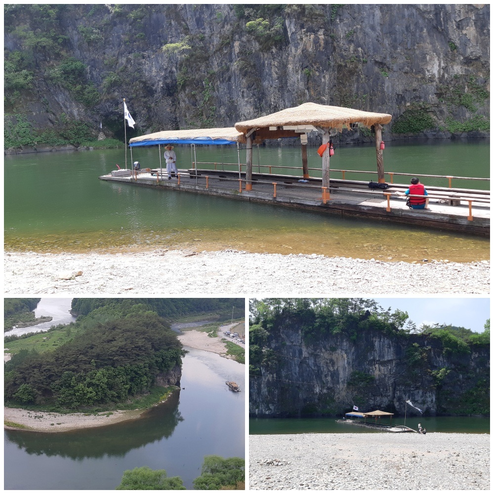 뗏목(실제 노를 젓는 뗏목이 아니라 모터로 작동된다)을 타고 가면서 한반도의 동쪽과 서쪽면을 볼 수 있는데 밀짚모자를 쓴 안내원이 재미있게 설명을 해 준다. 뗏목이 크고 안전하기 때문에 신발을 벗고 물속에 발을 담가도 된다. 뗏목에서는 전체 한반도 지형이 잘 보이지 않기 때문에 전체를 보기 위해서는 뗏목을 탄 후 오간재 전망대로 가야한다.