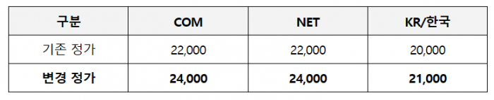 ㈜가비아는 9월 1일부터 COM, NET, KR 및 한국의 도메인 가격이 2023년 9월 1일부터 인상한다고 밝혔다.