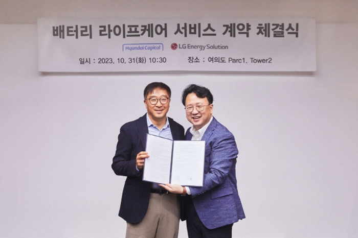 앞선 지난달 31일 서울 여의도 파크원에서 양사는 현대캐피탈 Auto사업본부 심장수 본부장, LG에너지솔루션 서비스사업개발TASK장 김태영 담당 등이 참석한 가운데 ‘배터리 라이프케어 상품 서비스 계약 체결식’을 진행했다.