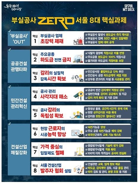 서울시는 이달 7일 해당 내용을 뼈대로 한 `서울형 건설혁신 대책`을 발표했다. 본 대책은 `부실공사 없는 안전 서울`을 만들겠다는 구상으로 마련됐다.