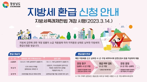 [아유경제=조명의 기자] 경상남도는 생애 최초로 주택을 구입하고 감면받지 않은 도민 318명을 찾아내 총 4억 원을 환급했다고 이달 9일 밝혔다.