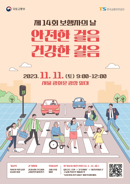 [아유경제=송예은 기자] 국토교통부(장관 원희룡ㆍ이하 국토부)는 제14회 `보행자의 날`을 맞아 오는 11일 서울 종로구 광화문광장에서 기념식을 개최한다고 밝혔다. 보행자의 날은 2010년 「지속가능 교통물류 발전법」에 따라 제한적인 에너지의 위기 도래, 환경보호 요구에 대응하고 국민건강을 증진시킬 수 있는 걷기의 중요성을 확산하기 위해 제정한 국가기념일이다.