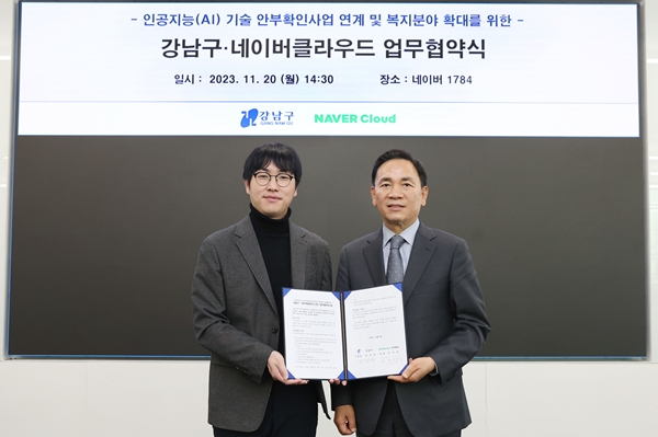 [아유경제=송예은 기자] 서울 강남구(청장 조성명)가 지난 20일 네이버클라우드와 `복지 분야 인공지능 확대 협약`을 체결했다고 밝혔다.