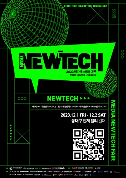 올해 처음으로 개최하는 `2023 미디어 뉴테크 대전`은 지난 7월 과학기술정보통신부 공모에 선정된 `대구 뉴테크 융합지원 창작플랫폼 구축 사업`의 성과를 발표하고, 지역 뉴테크 산업 활성화 및 지역기업의 해외진출 방안 등을 모색하는 행사이다.