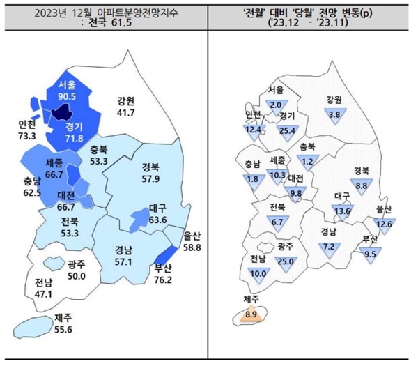 [아유경제=조명의 기자] 아파트분양전망지수가 올해 9월 이후 4개월 연속 하락하며 지난 2월(71.1) 이후 최저치를 기록했다.