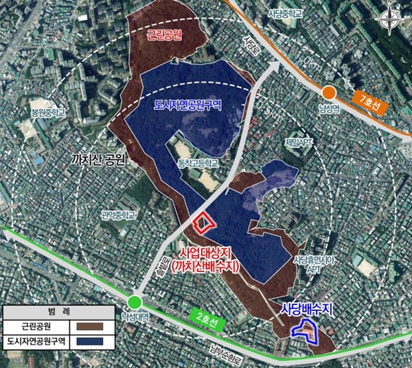 도시계획시설(수도공급설비)로 결정된 까치산배수지는 `2040 서울수도기본계획`에 따라 계획된 배수지로, 동작구 사당2~5동 일대의 수돗물 급수방식을 배수지 급수방식으로 전환하기 위한 시설이다.