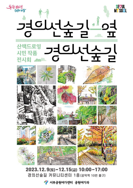 경의선숲길전시는 이달 9일부터 15일까지 일주일간 경의선숲길 커뮤니티센터 1층에서 전시되며, 오전 10시부터 오후 5시까지 경의선숲길 커뮤니티센터를 방문한 시민 누구나 무료로 관람할 수 있다.