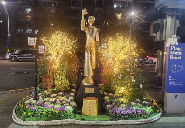압구정동은 매년 연말을 맞아 상권 활성화를 위해 압구정로데오에 빛 조형물을 설치하고 있다. 올해는 아파트 단지 가까운 주민센터까지 확대 설치했다.