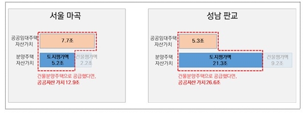 마곡의 경우 택지매각과 공공분양 이익은 5000억 원 수준이었으나, 공공임대주택 보유에 따른 자산가치 상승분이 6조7000억 원에 달하는 것으로 분석됐다.