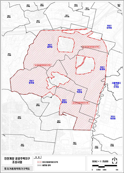 이로써 인천시의 남은 토지거래허가구역은 검암역세권, 대장지구, 구월2 공공주택지구 등 3개 지역 20.78㎢로 줄었다.