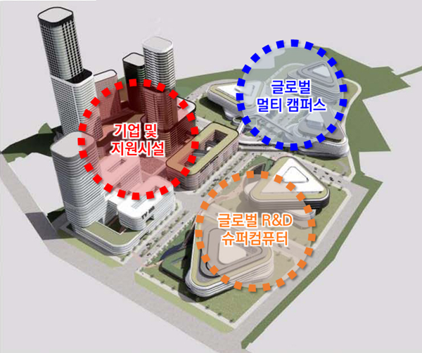 `AI 혁신클러스터`는 하남교산 신도시 내 약 3만 ㎡ 규모로, 글로벌 멀티캠퍼스, 글로벌 R&D센터, 슈퍼컴센터, AI+X(인공지능 융합) 트레이닝센터 등이 들어선다. 대규모 AI 집적단지를 조성하기 위해 카네기멜론대와 싱가폴국립대 등 해외 유수의 대학들과 포항공과대학교(인공지능연구원)를 비롯한 다수의 국내대학 및 기업들이 공동으로 참여할 예정이다.