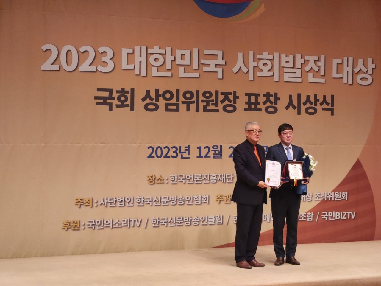 사단법인 한국신문방송인협회는 지난 22일 한국언론진흥재단 20층 국제회의장에서 시상식을 열고 이관수 교수에게 "2023 대한민국 사회발전 대상"을 수여했다.