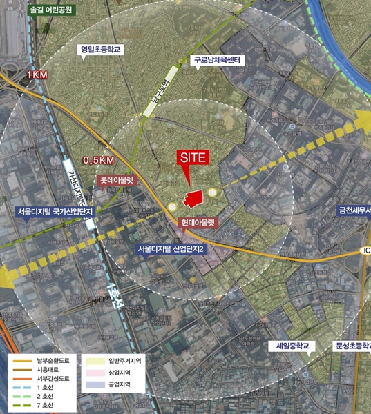 대상지는 구로구 우마길 19-2(가리봉동) 일원으로 1ㆍ7호선 환승역인 가산디지털단지역을 도보로 이용할 수 있다.
