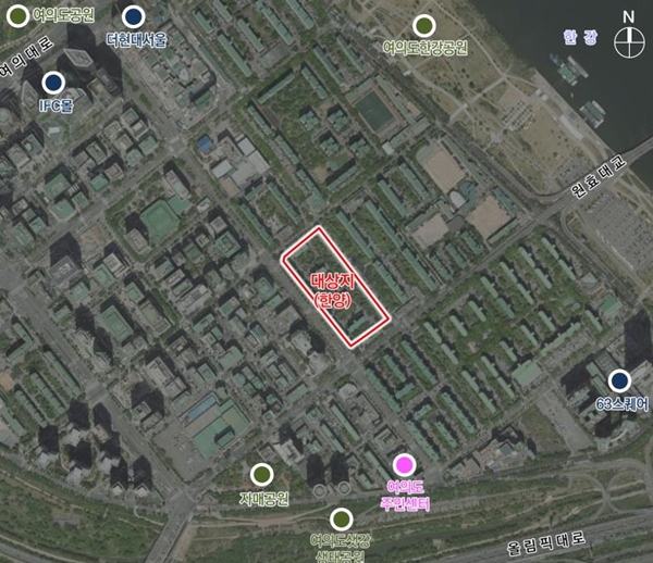 영등포구 국제금융로 79(여의도동) 일대 3만4879㎡를 대상으로 한 이곳은 여의도 한강변에 인접해 1975년에 준공된 공동주택 8개동 588가구 규모의 노후 단지다.