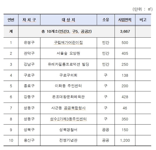 옥상정원 조성사업은 「서울특별시 옥상녹화 지원에 관한 조례」에 따라 공공ㆍ민간건물에 옥상정원 조성 사업비를 일부 지원해주는 사업으로, 지난해까지 총 785곳(32만8133㎡)의 건물에 옥상정원을 조성했다.