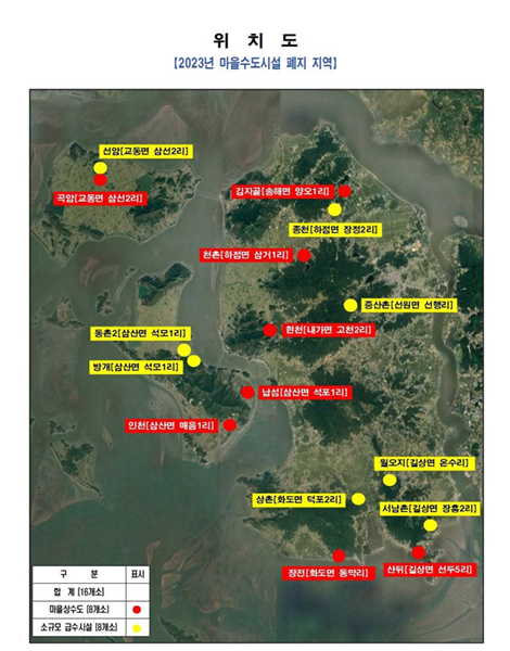 당초 2021년부터 2025년까지 25개소에 대해 지방상수도 전환에 따른 마을수도시설 폐지를 추진했으나, 2023년 12월 기준으로 27개소를 폐지해 목표를 초과 달성하고 마을수도시설 유지에 필요한 연간 운영ㆍ관리 예산 약 2억 원을 절감하는 등 큰 성과를 이뤘다.