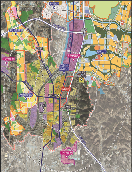 오산시는 동탄2지구와 동탄산업단지 등과 연계한 지식산업용지를 조성해 도시의 자족기능을 강화하고 경부고속도로 오산나들목(IC) 주변으로 주상복합단지, 업무복합타워 등을 형성해 시의 랜드마크를 조성할 계획이다.