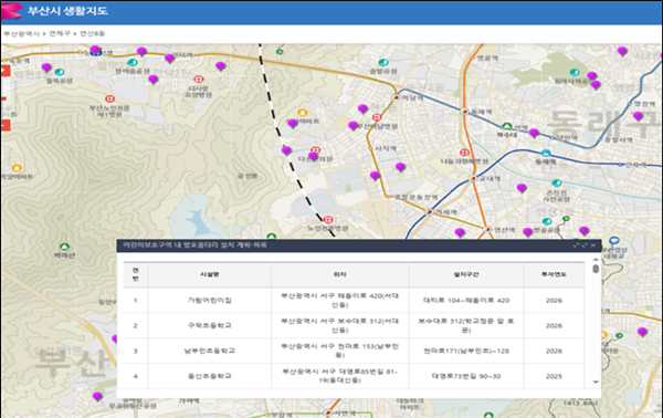 시민들이 직접 체감할 수 있는 정책인 방호울타리, 보도, 불법주정차 무인단속카메라(CCTV) 등 시설개선계획이 위치기반 정책지도로 제공돼 클릭 한 번으로 쉽게 확인할 수 있다.