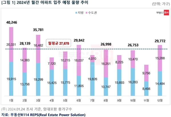 [아유경제=조명의 기자] 오는 2월 입주 예정 물량이 전월(1월)보다 1만 가구 줄어들 전망이다. 수도권은 1만4383가구, 지방은 1만3756가구가 입주가 예정돼 있다.