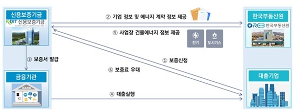 한국부동산원은 국가 건물에너지 통합관리시스템에 구축된 에너지 사용량 데이터(이하 건물에너지DB)로부터 중소기업의 감축 결과를 확인해 신용보증기금에게 보증료 감면에 필요한 정보를 제공한다.