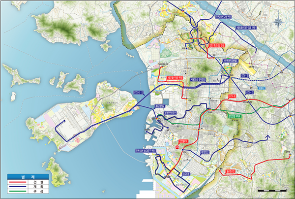 아울러 시는 수도권 주요 거점 간 이동시간을 30분 대로 단축하는 광역철도망 확충 사업도 추진한다. 인천 서남부 지역 광역철도망 구축으로 서울 접근성의 획기적 개선과 주민의 교통 편익 증진에 기여할 것으로 기대되는 제2경인선은 민간투자사업 방식 등을 통해 추진될 예정이다. 인천시는 올 상반기 제2공항철도 건설이 제5차 국가철도망구축계획에 반영될 수 있도록 할 계획이다.