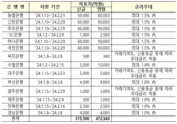 은행권도 설 연휴 전후로 중소기업에 거래기여도와 신용등급 등에 따른 금리우대를 반영해 총 78조8000억 원의 대출을 공급할 계획이다. 은행별 각 영업점을 방문해 설 명절 특별자금지원 상담을 받으면 되며 지원기간은 은행별로 다르다.