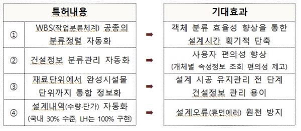 LH는 2023년 말 국내 상용화된 BIM 모델에서 구현하기 어려웠던 설계내역서 산출 자동화, 건설정보 통합관리 기술 등의 기술 4건을 개발 후 특허 출원하며 BIM 기술 수준을 향상시켰으며 BIM 기술 고도화를 위해 BIM전담팀을 신설한 바 있다.