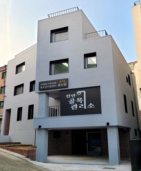 `골목관리소 천연`이 위치한 도시재생 거점시설은 4개 층에 건축 총면적 293㎡ 규모로, 골목관리소 위층으로는 서대문구 학교밖청소년지원센터와 청소년공부방 겸 주민 커뮤니티실 등이 들어선다.