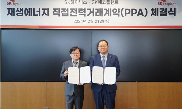 [아유경제=조명의 기자] SK에코플랜트가 지난 21일 SK하이닉스와 재생에너지 공급을 위한 직접전력거래계약(PPA)을 체결했다.