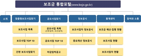 지금까지 보조금이 궁금할 때 국고보조금은 `e나라도움(국고보조금통합관리시스템)`에서, 지방보조금은 `보탬e(지방보조금관리시스템)`에서 따로 확인해야 했으나, 보조금 통합포털 한 곳에서 국가보조금에 대한 모든 정보를 확인할 수 있게 됐다. 다만 현행 보탬e 누리집은 민간보조사업자 혼란방지를 위해 당분간 유지한다.