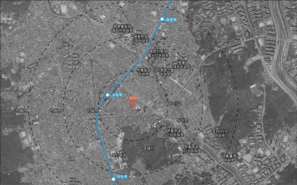 이곳은 지하철 4호선 수유(강북구청)역이 도보 6분 거리에 있고 수송초, 번동중, 신일고, 성신여대 운정그린캠퍼스 등이 있다. 더불어 주변에 강북구청, 서울강북경찰서, 번1동주민센터, 수유리먹자골목 등이 인접해 행정ㆍ치안시설 및 먹자거리를 갖추고 있다.