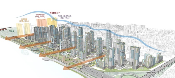 앞서 구는 정비계획 변경(안) 공람공고를 통해 건축심의 과정에서 특별건축구역을 고려해 건페율, 용적률, 일조 등의 확보를 위한 높이 제한을 완화한 바 있다. 이에 조합 결정에 따라 지상 70층까지도 가능해진 상황.