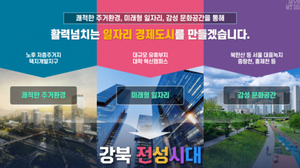 오세훈 서울특별시장은 `일자리 중심 경제도시 강북` 조성을 비전으로하는 권역별 도시대개조 프로젝트 2탄 `강북권 대개조-강북 전성시대`를 발표해 노후 주거지, 상업지역에 대한 규제 완화와 파격적인 인센티브 부여로 개발을 활성화하고 대규모 유휴부지를 첨단산업과 일자리 창출 거점으로 조성하겠다는 계획을 밝혔다.