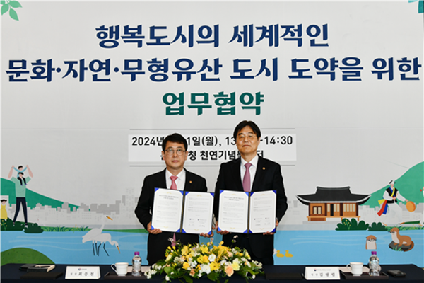 [아유경제=송예은 기자] 행정중심복합도시건설청(청장 김형렬ㆍ이하 행복청)과 문화재청(청장 최응천)은 지난 1일 국립박물관단지 조성과 함께 행복도시에 국가유산 정보 확산 및 세계적인 문화ㆍ자연ㆍ무형유산의 도시로 성장시키기 위한 업무협약을 체결했다고 밝혔다.