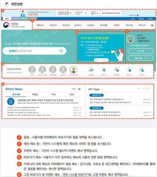 [아유경제=송예은 기자] 국토교통부(장관 박상우)는 이달 5일부터 기반시설 관리시스템 `기반터`를 운영한다. 기반터는 도로, 철도 등 15종 약 48만 개 기반시설의 안정적인 관리를 지원하기 위해 국토교통부에서 새롭게 구축한 시스템이다.