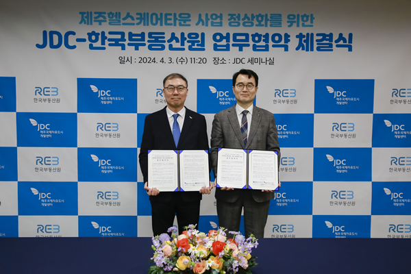 [아유경제=송예은 기자] 한국부동산원(원장 손태락)은 지난 3일 제주국제자유도시개발센터(이사장 양영철)와 `제주 헬스케어타운 사업 정상화를 위한 업무협약(MOU)`을 체결했다고 밝혔다.