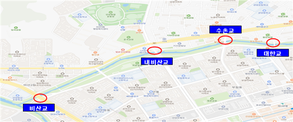 학의천 하상도로는 도심지에 위치해 있고 안양천과 학의천이 합류되는 지점이기 때문에 여름철 집중호우시 침수사고가 발생할 위험이 다소 높다.