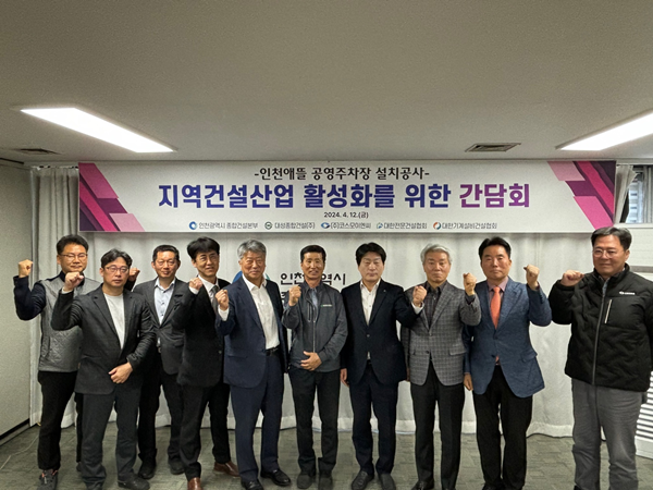 [아유경제=송예은 기자] 인천광역시 종합건설본부는 `인천애뜰 공영주차장 설치공사`의 시공자 및 유관 협회와 간담회를 개최했다고 밝혔다. 간담회에서는 지역건설업체의 하도급 참여 확대와 상생협력 방안에 대해 논의하는 시간을 가졌다.