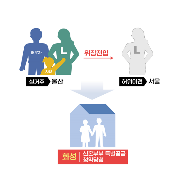 이번에 적발된 주택 공급질서 교란행위의 주요 유형은 먼저, 해당 지역 거주자 또는 무주택세대구성원의 청약자격을 얻기 위해 주소지만 옮겨서 청약하는 부정청약이 142건 적발됐으며 특별공급 청약자격 또는 무주택기간 점수를 얻고자 주택을 소유한 배우자와 허위로 이혼하고 청약하는 부정청약이 7건 적발됐다.